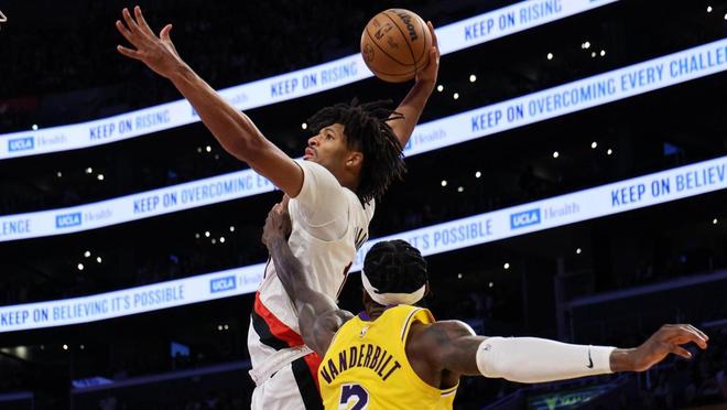 夏普单打得分,格兰特2罚全中,范德比尔特暴扣还以颜色。霍勒迪单打布朗尼得分,开拓者挑战判罚成功,克内克特2罚全中。霍勒迪、夏普与里夫斯各有冲击篮下打进,克内克特中投得分,阿夫迪亚2罚全中,紫金军团请求暂停。里夫斯命中续命远投,波特兰请求暂停。卡马拉空切上篮得分,克林根空接打进,开拓者领先14分得以锁定胜局。比赛仅剩74秒,杨瀚森被替换上场,里斯与克内克特对射远投,时间走完。最终,开拓者以122比108完胜湖人。