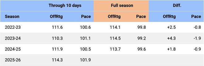 局势可能瞬息万变(去年此时有五支最终晋级季后赛的球队胜率未过半),以下是赛季前十日的十项关键数据...