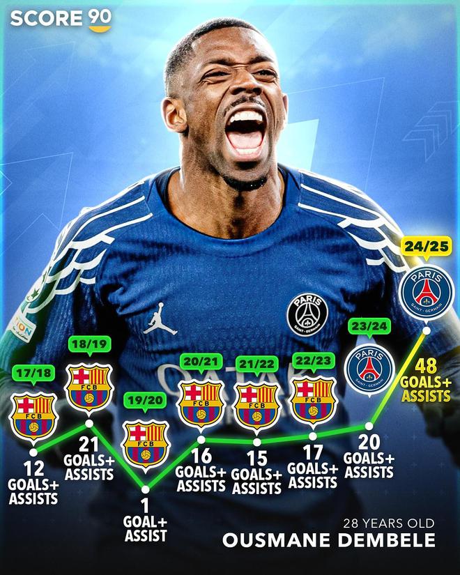 超凡表现!登贝莱赛季迄今各项数据&荣誉能否匹配金球?